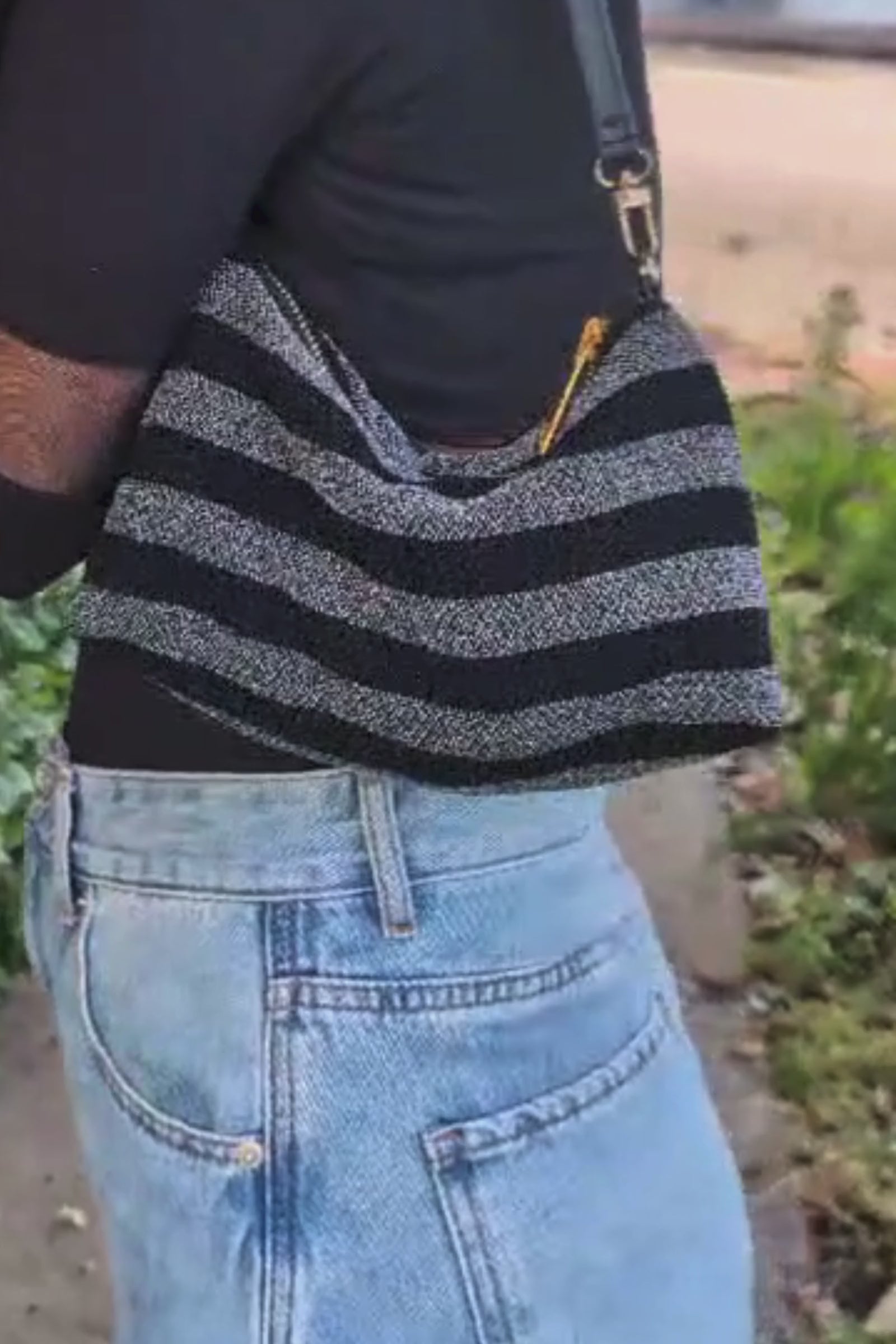 With its fluid structure, luxe synthetic leather strap, and gold-tone details, this bag is designed for those who love fashion with movement, sparkle, and a touch of sophistication.