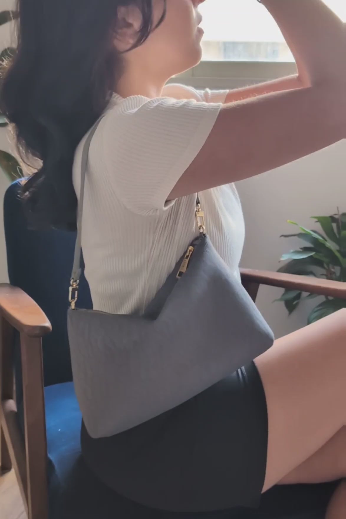 Made from sporty mesh fabric that’s soft, spongy, and eye-catching thanks to its unique texture. The shape is puffed yet delicate, balancing between playful and classic.